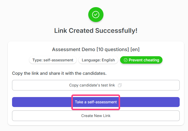 - Copy the generated link and send it to the candidate.
