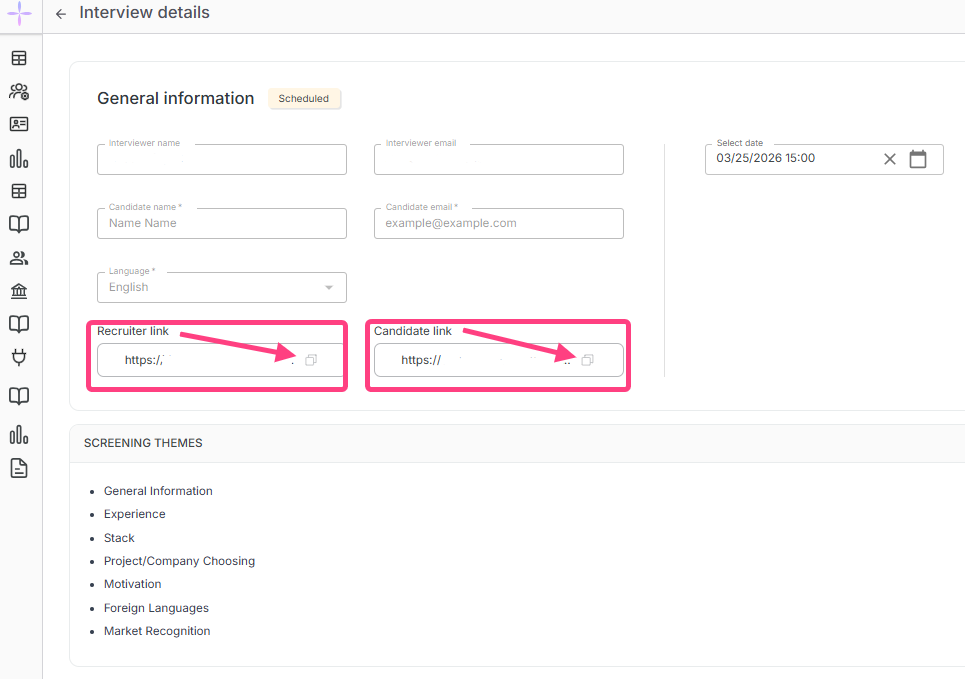 After that, click Save. The system will create the interview and provide two links: