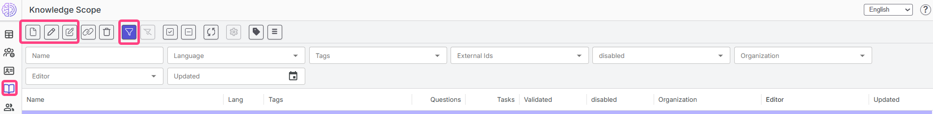 | Show / Hide filters | Opens or hides the search and filtering panel. |