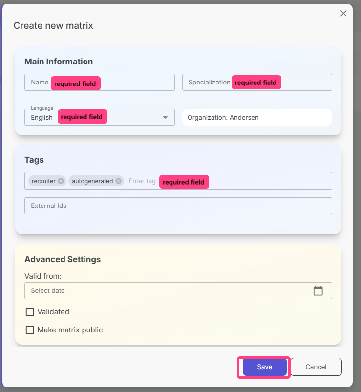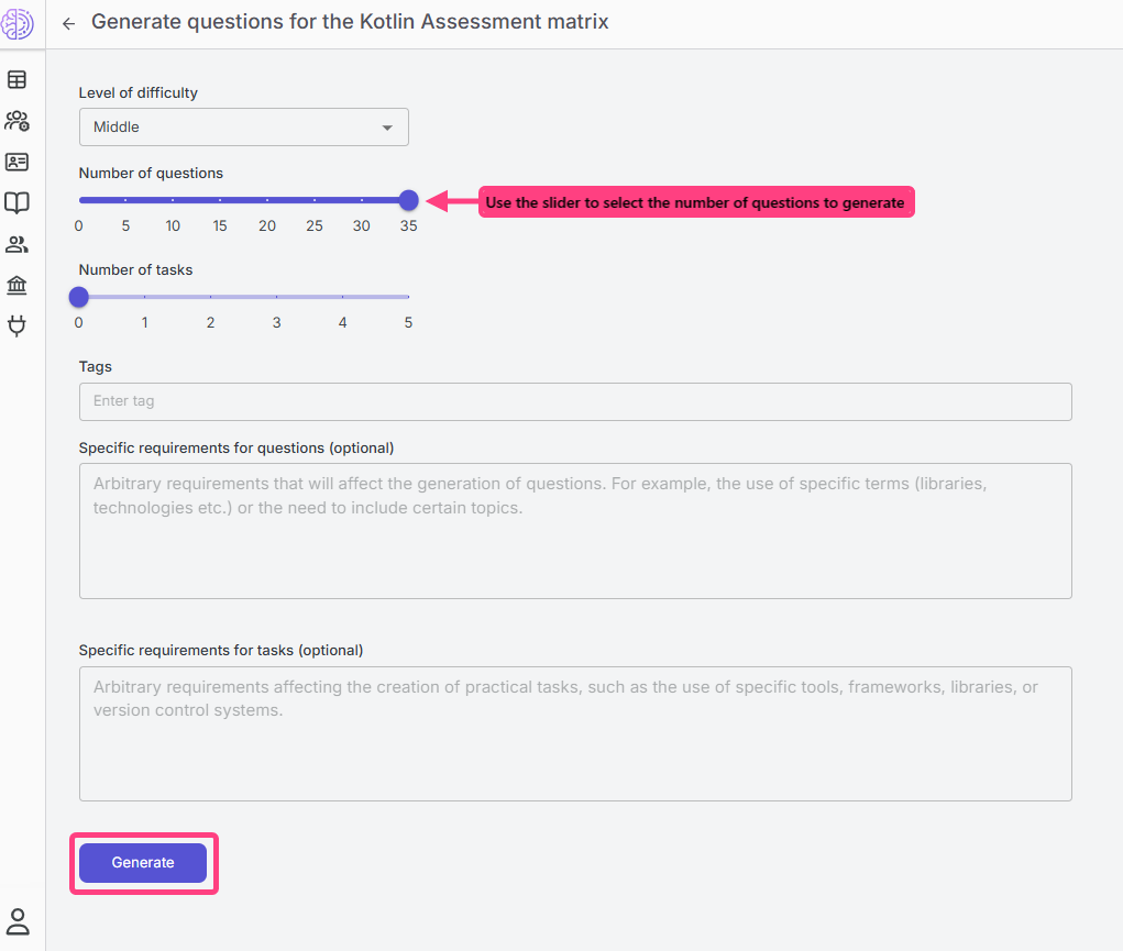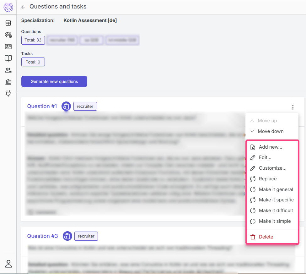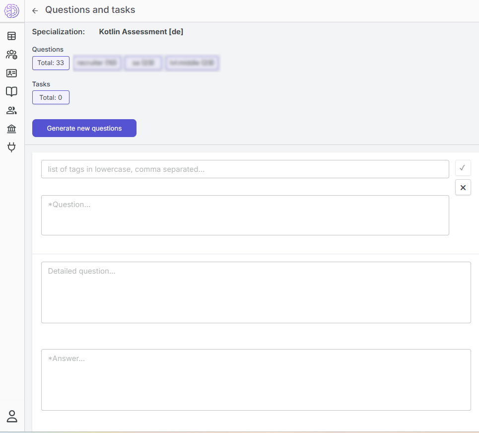Important: a correctly configured knowledge matrix with properly assigned tags ensures accurate matching of questions to the candidate's specialization and directly affects interview quality.