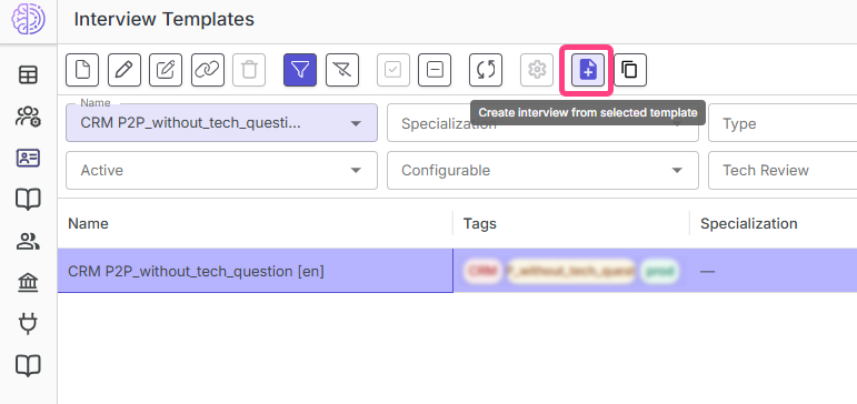 P2P interviews allow you to organize a live video interview between a recruiter and a candidate in real time. The system automatically builds the interview structure based on the selected template and may include technical questions.