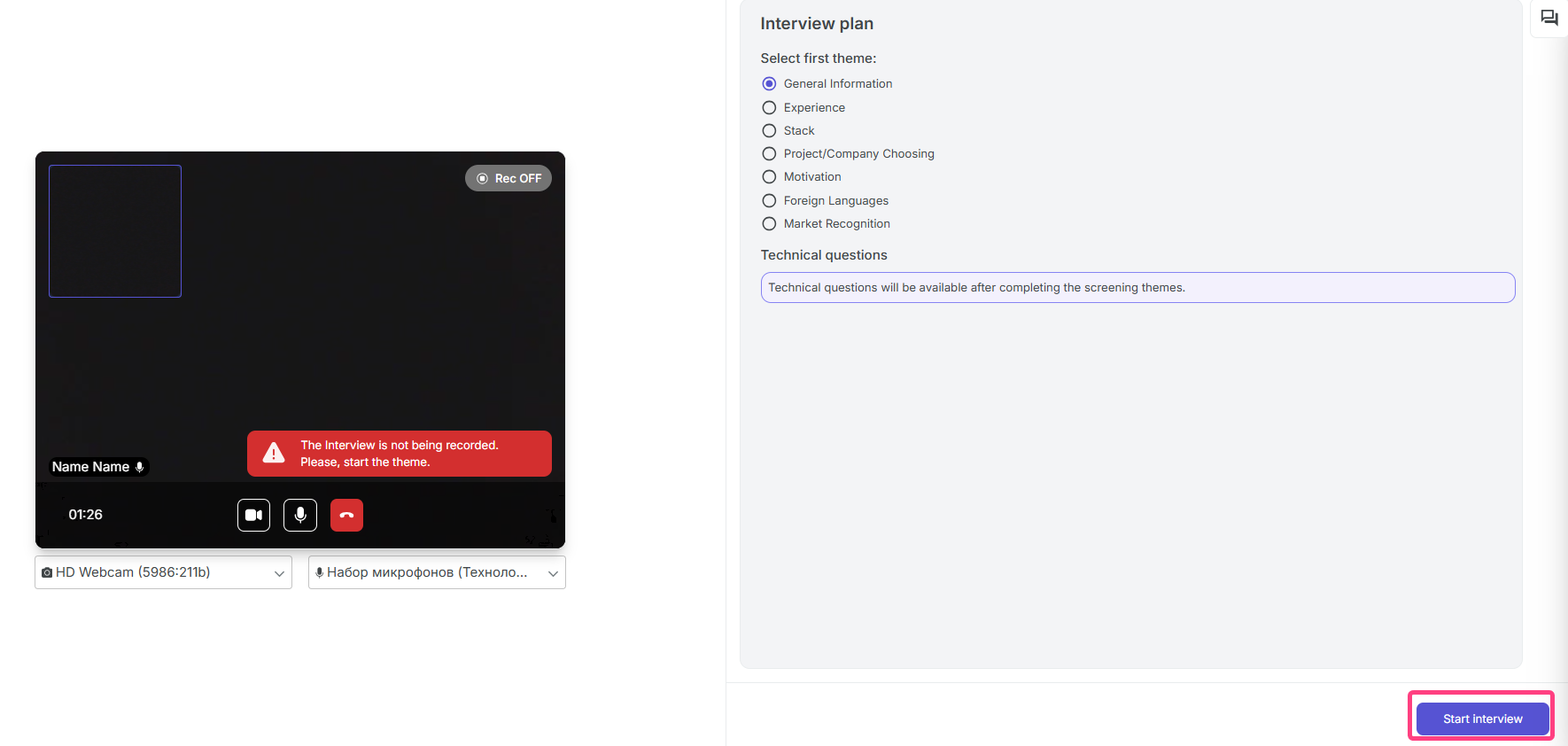 - Choose the interview mode: